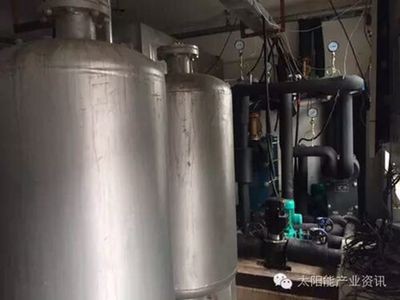 太阳能与地源热泵采暖、制冷系统运行原理分为三部份:一是通过太阳能温差循环加热。太阳能通过温差循环加热集热水箱中的水,集热水箱水满时,集热器温度T1大于集热水箱温度T2的8℃(可调)时,太阳能循环泵启动,集热器里的热水流入水箱,水箱中的低温水顶入集热器继续加热;当集热器温度低于或等于集热水箱水温时,太阳能循环泵停止,如此反复。二是地埋管蓄热循环。当集热水箱水满,且温度达到设定温度45℃(可调),电磁阀打开,集热水箱中的热水流入地埋管内,水箱温度低于设定温度5℃(可调)时,电磁阀关闭,太阳能继续加热,如此反复,温差循环。三是室内末端循环。室内风机盘管通过设定好的温度,当回水温度低于设定温度5℃时,热泵启动增温,达到设定温度后停止运转,如此反复。地埋管及风机盘管循环泵均为一备一用,备用泵单独放置。