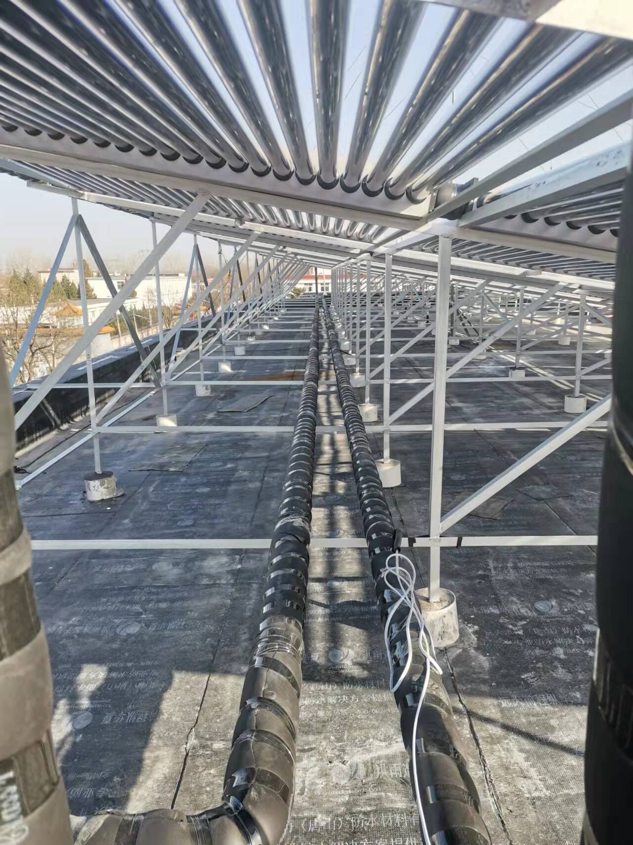 目前国标的真空管有47管和58管,考虑到原有的系统采用的就是58管,新安装系统决定依然使用58管,我公司生产的58真空管,集热性能好,膨胀系数高,能够很好的应对极寒天气和恶劣天气,系统又得到了一重保障。